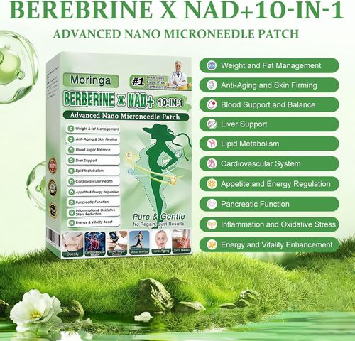 Berberine Patches for Weight Loss, 10-in-1 Nano Microdarts Moringa Berberine Patch, Natural Berberine Patches for Women and Men, Ultra-Thin Invisible Gentle Skin Formula