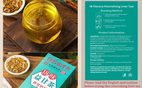 - Ingredient: Cassia seed, orange peel, double-petal red rose, burdock root, dandelion, chrysanthemum, goji berries, etc