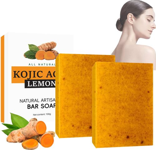 2PCS Turmeric Soap - Natural Kojic Acid Soap for Skin Care - Body and Face Kojic Acid Soap Original - Handmade Tumeric Soap for Smooth Skin, Moisturizing (200g (Pack of 2))